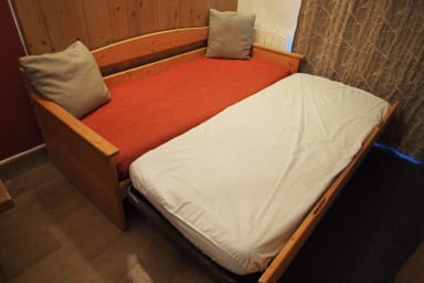 - A living room with a sofa/truckle beds (which can be turned into 2 single beds or 1 double bed),
