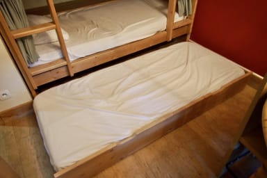 - A corner area (still in the living room), with triple bunk beds and a truckle bed in a drawer beneath.