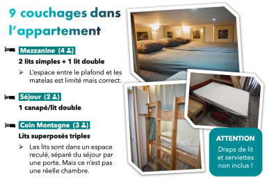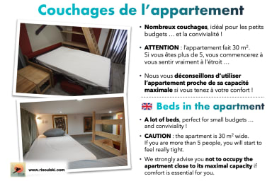 This 30m² apartment can accommodate up to 9 people but this will have an impact on your comfort.
