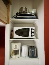 - Fully equipped kitchen: dishwasher, oven, microwave oven, coffee machine with filters, a kettle, a raclette/pierrade machine, fondue machine, a toaster, a mixer and a juicer. But also plenty of dishes, glasses (wine, champagne, beer and water glasses), cutlery sets, pots, pans...